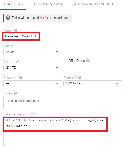 - Paste your YTZ tracking link into the Base Destination URL field.