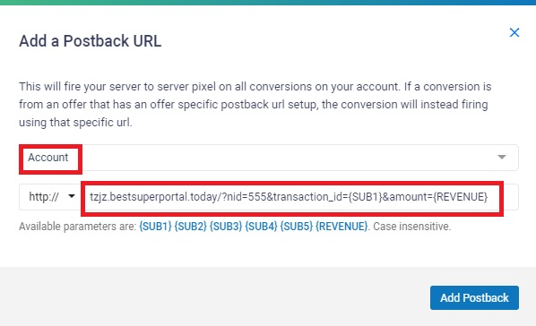 Paste your postback URL in the bottom section.