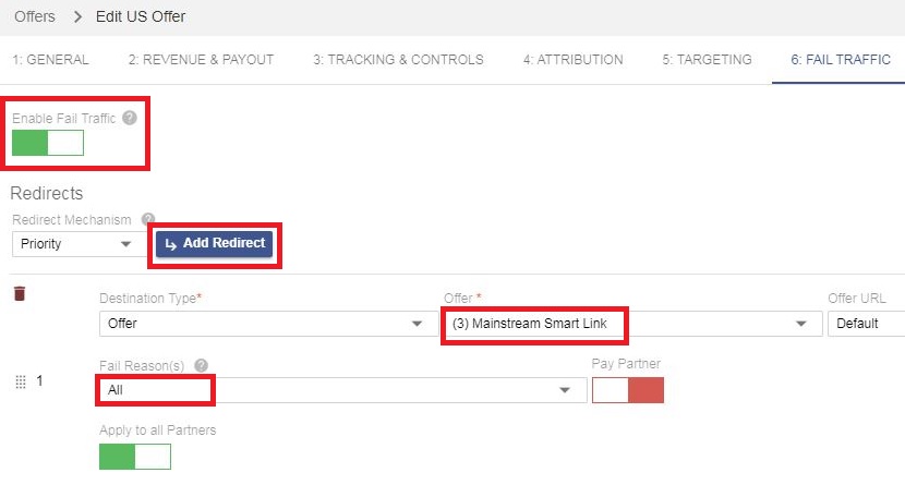 - Select the offer that you want to set up the redirect for.