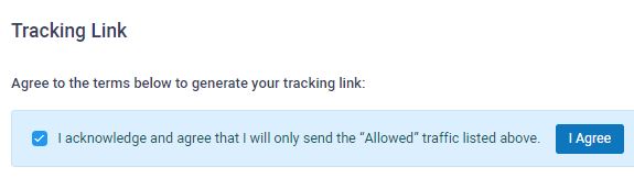 - Scroll down to the Tracking Link section and agree to the terms to generate your unique tracking link.