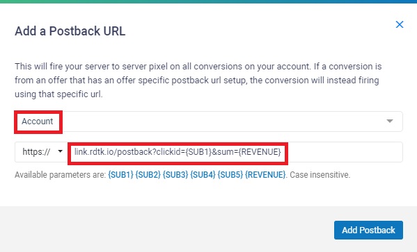 xxx.rdtk.io/postback?clickid={SUB1}&sum={REVENUE}