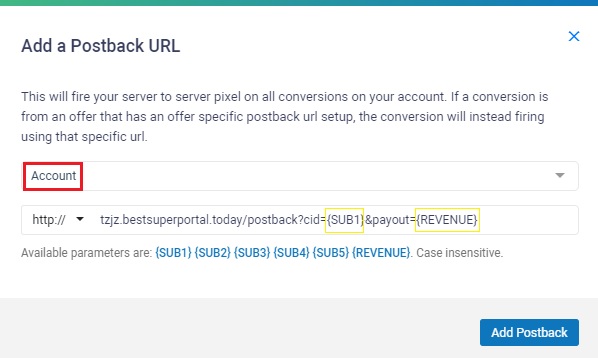 Paste your postback URL in the bottom section.